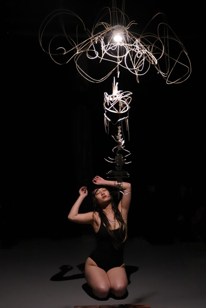 The initial stoneware is replaced by porcelain, introducing a sense of fragility and impermanence. The shift in material amplifies the sound of the clay pieces clinking against each other. My gestures no longer follow choreography but emerge from my reaction to the vibration of the form itself.